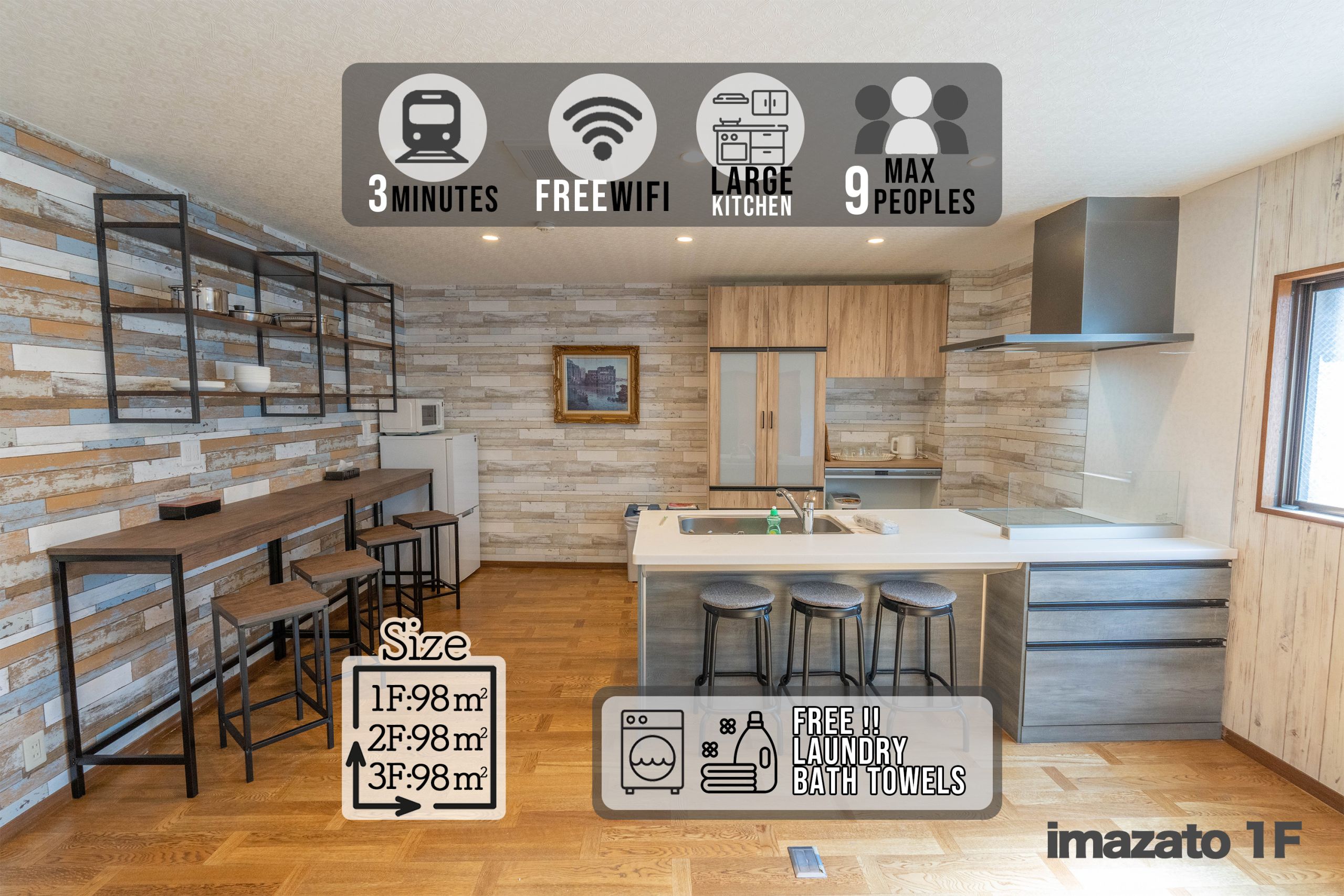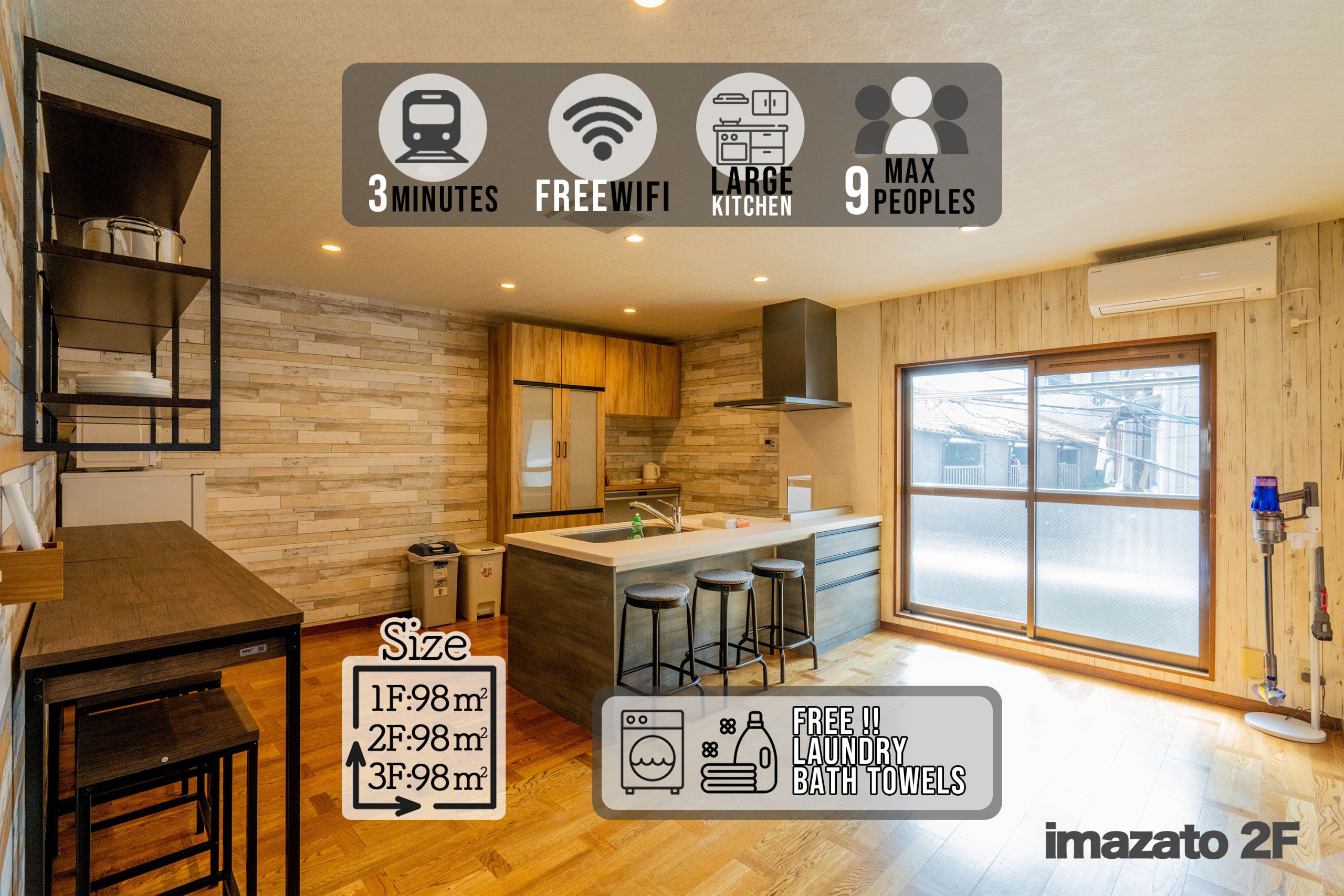 大阪市にあるOimazato大今里民泊はNakagawa Parkから徒歩14分、The Osaka Korean Church in Japanから1.2km、Himekoso Shrineから徒歩14分で、テラスと無料WiFi付きのユニットを提供しています。Anraku-ji Templeから徒歩14分の宿泊施設で、庭と無料専用駐車場を提供しています。